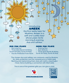 Fun and Educational: Our Islamic toys are not just fun but also educational. We understand that teaching children about Islam can be challenging, so we have developed toys that make the learning process enjoyable and memorable. Our products help instill the remembrance of Allah in the lives of Muslim children. Such good Islamic values and habits of doing Dua and Ahkar will grow with the children and be part of their daily/ nightly lives for generations to come.